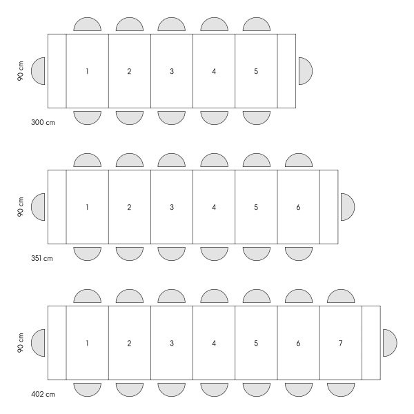 Misure aperto: 300 x 90 x 76 cm (con cinque allunghe)