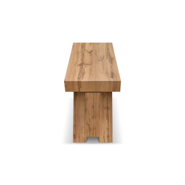 Con le sue dimensioni chiuse di soli 45 cm di lunghezza, Luisa si inserisce con naturalezza anche negli ingressi, nei corridoi o nei soggiorni più contenuti, occupando lo spazio di una semplice consolle decorativa. Ma quando gli ospiti arrivano, rivela la sua vera natura: grazie alle sue sette allunghe centrali, si estende fino a 402 cm, accogliendo comodamente fino a 16 persone attorno a un’unica tavola. Il piano in nobilitato melaminico color rovere rustico, dallo spessore generoso e dalla venatura calda e avvolgente, conferisce a Luisa un carattere deciso e autentico.