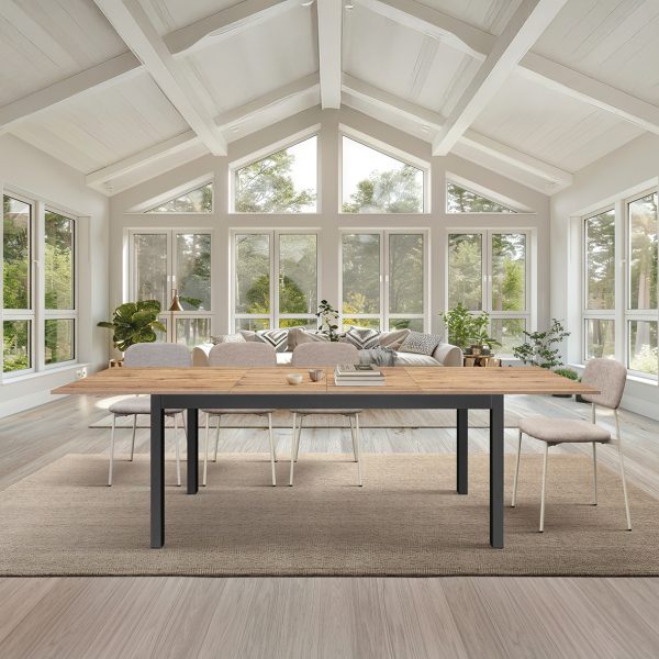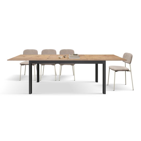 Nelle sue dimensioni chiuse di 140 × 80 cm, il tavolo Thomas si presenta come un pezzo d’arredo compatto e proporzionato, ideale per cucine e soggiorni di medie dimensioni. Quando le occasioni lo richiedono, si trasforma con semplicità: grazie alle due allunghe centrali, raggiunge i 220 cm di lunghezza, accogliendo comodamente fino a 10 persone attorno alla stessa tavola.
