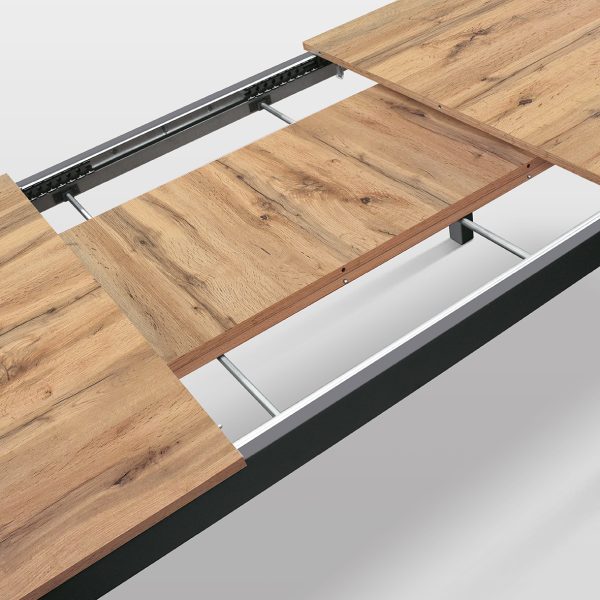 Il meccanismo di allungamento è dotato di guide metalliche di precisione che garantiscono un’apertura fluida, silenziosa e stabile in ogni configurazione. Le allunghe, perfettamente abbinate al piano per colore e finitura, si inseriscono con facilità senza interrompere l’armonia estetica del tavolo. Robusto, funzionale e dall’estetica curata, il tavolo Thomas è pensato per chi desidera un arredo che sappia adattarsi alla vita di tutti i giorni senza rinunciare al carattere.
